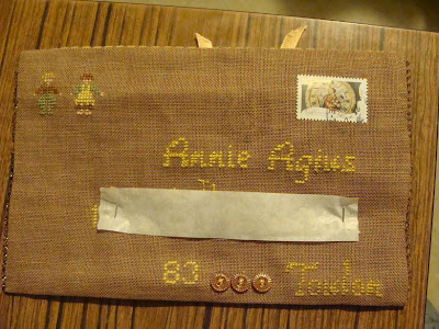 Isabelle vient s'installer dans la Var et m'avait contacté par mail... Nous nous sommes rencontrées dans Toulon et elle est repartie chercher ses affaires en me promettant de m'envoyer un PETIT bout de broderie hardanger et voici ce que j'ai trouvé dans ma bal ce matin...Recto brodée au point compté et verso en Hardanger fermé par un ruban ... L'enveloppe a été cousue et fermée avec des perles... Merci à la poste et surtout à toi Isabelle... A très bientôt dans le Var...